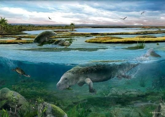 A los sirenios se le conoce también como vacas marinas porque son los únicos mamíferos marinos herbívoros. Este grupo de mamíferos apareció por primera vez hace 50 millones de años y evolucionaron a partir de mamíferos terrestres en el continente africano hasta convertirse en animales totalmente marinos. En la actualidad, están representados por los dugongos y los manatíes que habitan en ríos y costas de latitudes tropicales.