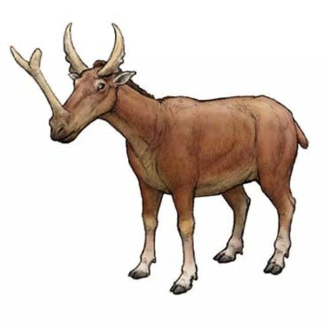 Era un animal emparentado con el camello, aunque se parecía más a un caballo, debido al cuello relativamente corto, la forma de las pezuñas y el tamaño. Sus patas eran muy fuertes para escapar de los grandes depredadores como el Amphicyon, un perro oso del tamaño de un león, y por aquel entonces, el mayor carnívoro terrestre del planeta. Lo más destacable del animal era su cabeza, con tres cuernos parecidos a los de dinosaurios como el Triceratops, por eso se le llamó así a la única especie: Syntethoceras tricornatus. Los cuerno estaban hechos de hueso y sólo los tenían los machos, pues solo se usaban en la época de celo. Tenía dos cuernos encima de los ojos similares a los del toro, pero el mayor cuerno estaba sobre el hocico, este podía medir 1 metro de largo. Se dividía en dos puntas similares a una y, y era usado por los machos para atraer a las hembras y en los combates entre ellos.